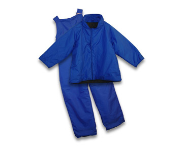 to reduce bulk. The outer layer, of royal blue, woven, polyamide,