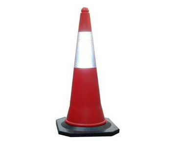 Specification – Traffic Cone Rubber Base Heavy Duty of Size 750 mm Ht and 1 Nos of White Color 4” Reflective Sheeting.